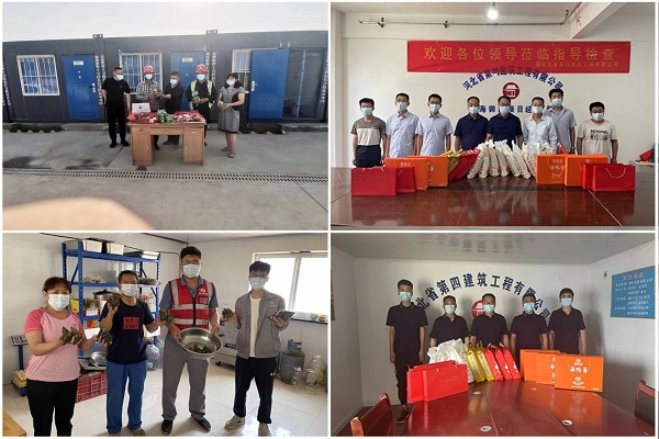 端午节前夕,五分公司、七分公司、八分公司组织包粽子活动。各单位餐厅提前准备包粽子原材料,组织职工一起动手包粽子,过程中大家热情高涨,整个餐厅萦绕着欢声笑语、飘溢着诱人的粽香。五分公司还用职工们包的粽子就近慰问了退休老职工、空巢老人等特殊群体,老人们边吃边感谢。七分公司组织机关职工缝香囊、编五色手链,制作完成后由工会将大家的手工河北四建、蜜粽、咸鸭蛋等慰问品送给项目职工,向他们送去节日祝福。