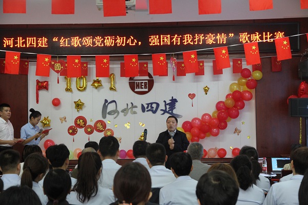 9月29日上午,河北四建公司在公司四楼会议室举办了“红歌颂党砺初心,强国有我抒豪情”歌咏比赛,用歌声为祖国母亲献上最诚挚的祝福,公司12个单位116名职工独唱、合唱37首红歌。小小舞台成为职工们学党史、感党恩的深情表达,活动现场高亢而洪亮的歌声,把对祖国的热爱融入到歌声中,充分表达了热爱祖国的真挚情感。