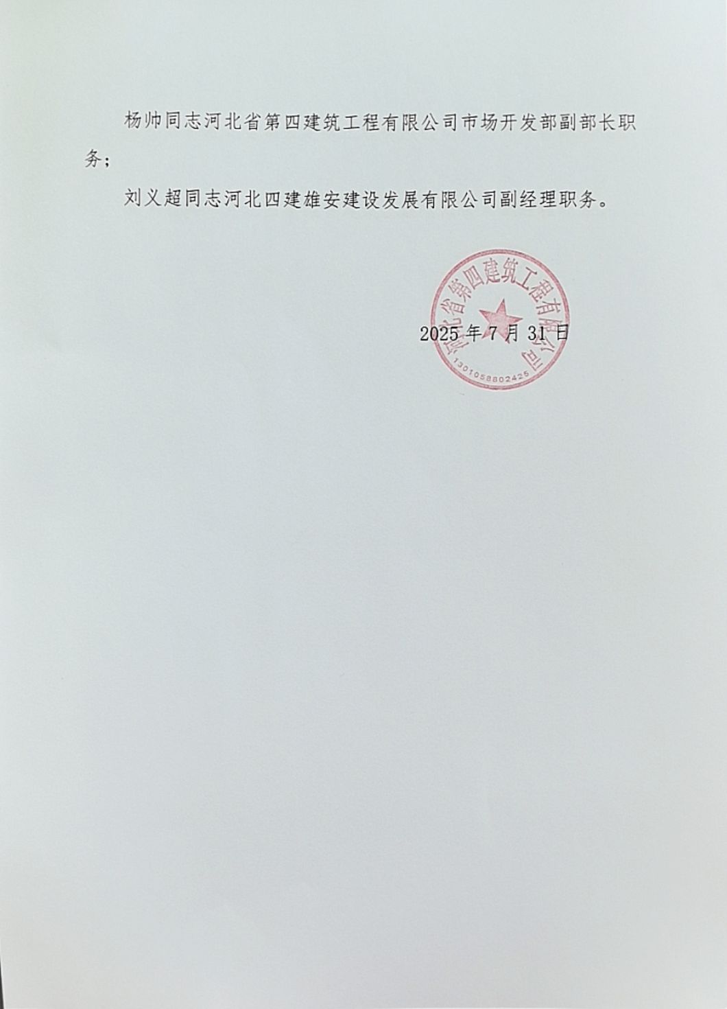 河北四建:关于尹玉石同志聘任职务的通知